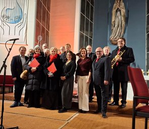 Den bewegenden Schlusspunkt des Konzertes bildeten drei gemeinschaftliche Stücke mit Publikumsbeteiligung: „Leise rieselt der Schnee“, „O du Fröhliche“ und der „Andachtsjodler“. In diesen Momenten wurde die Pfarrkirche Maria Lourdes von einem besonders intensiven Weihnachtsgefühl erfüllt — ein berührender Höhepunkt, der Musiker und Zuhörer gleichermaßen verband.